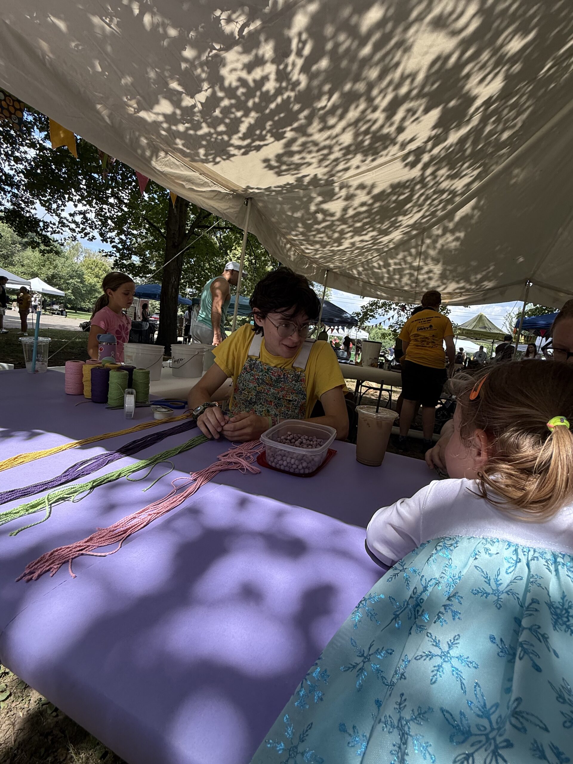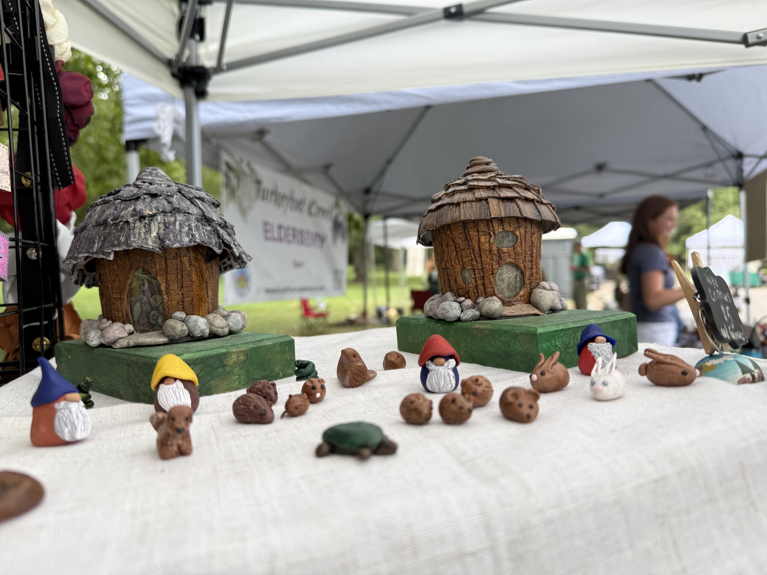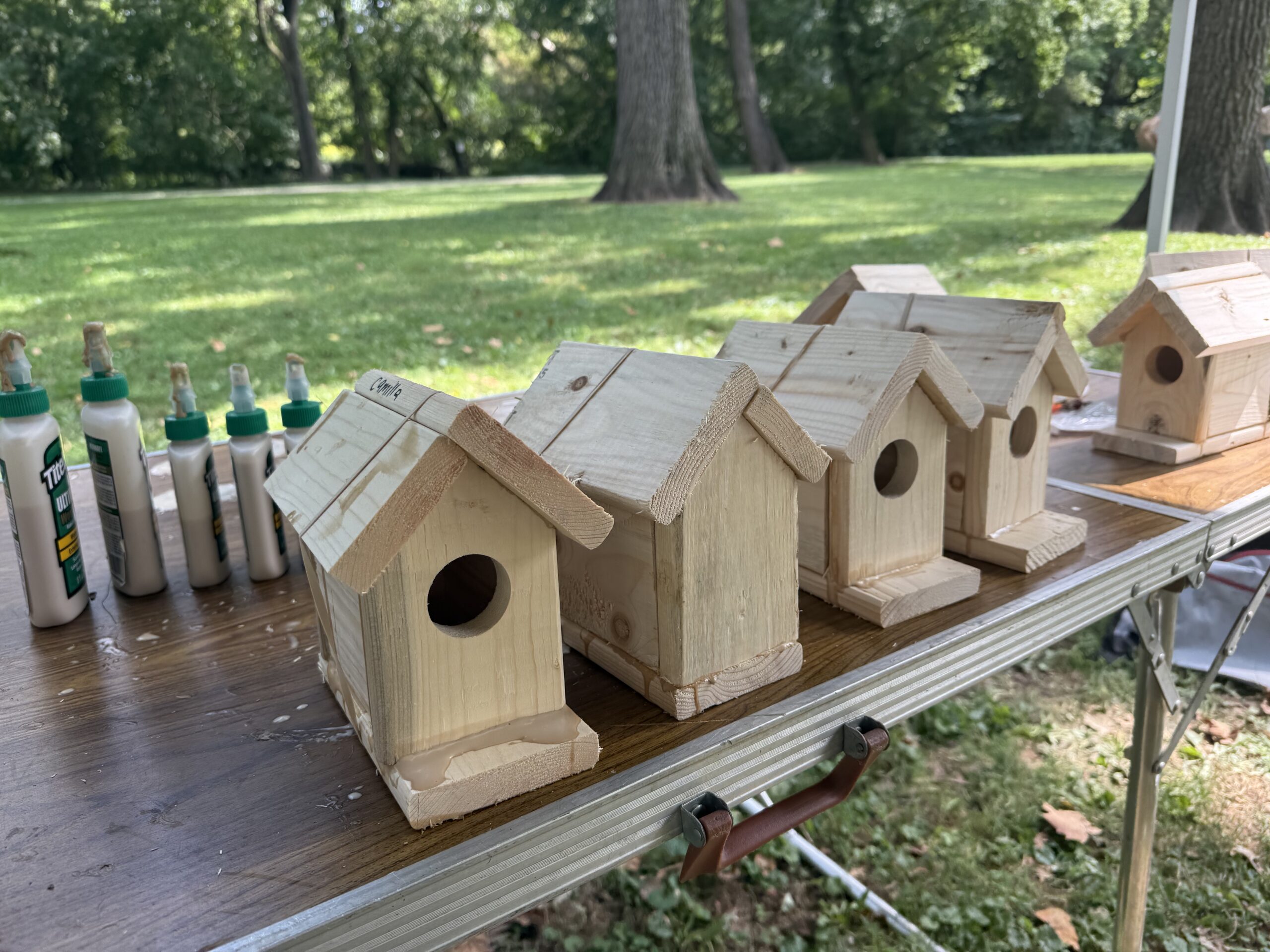 Bird houses wait for their glue to dry after being assembled by children at the festival. The materials were donated by The Knue Shop.