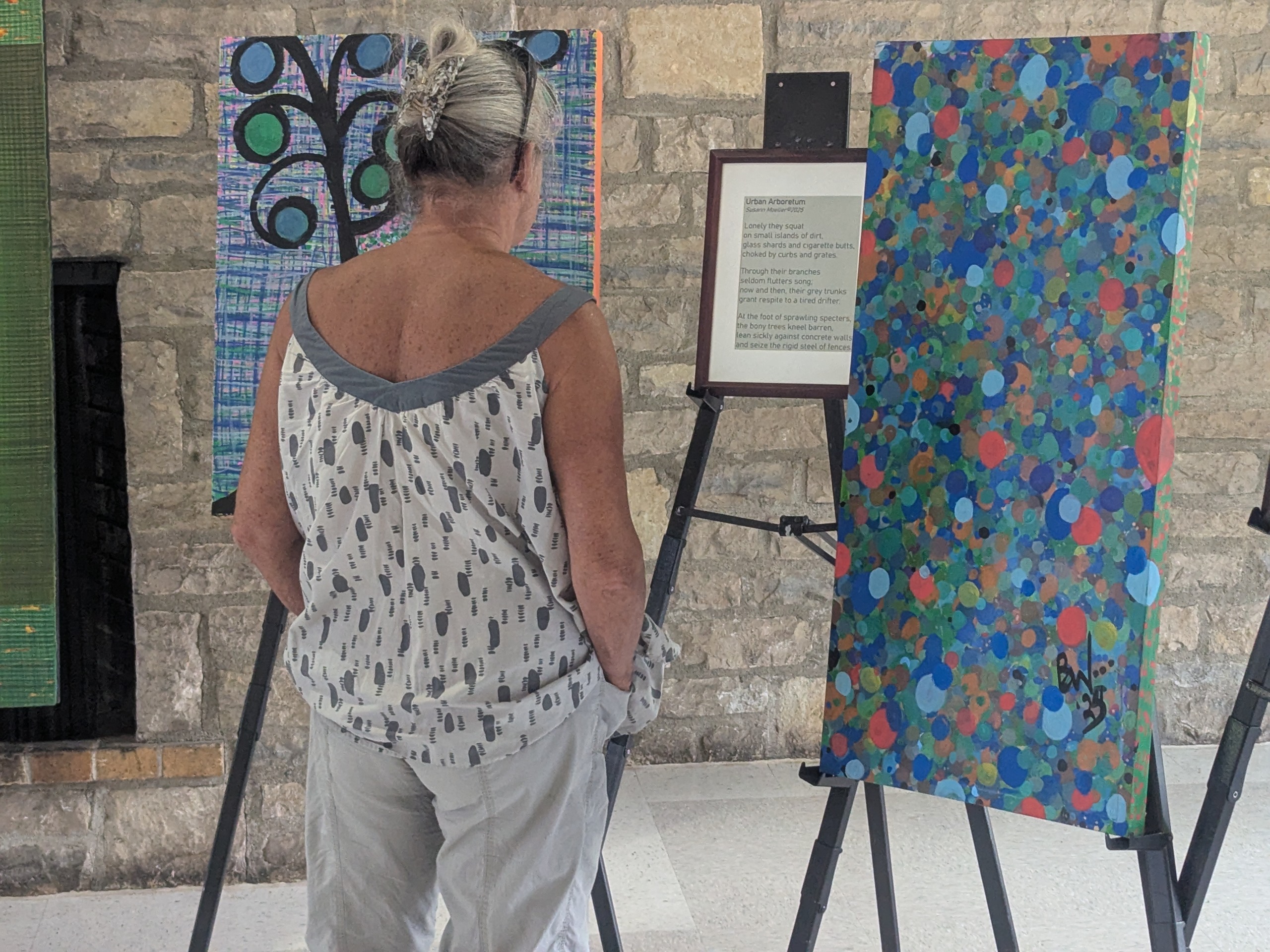 Painters and poets created art reacting to each other’s work as part of Ohio Poetry Society’s ekphrastic art exhibition at the Whetstone shelter house.